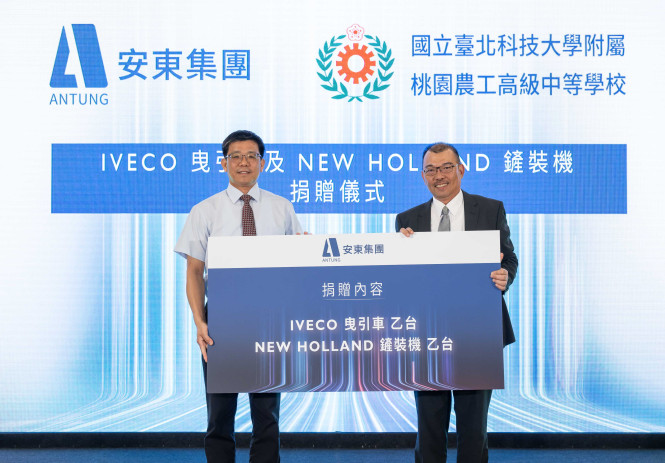 In pursuit of the operational objectives of ESG corporate sustainable development, Antung Group has introduced heavy-duty commercial vehicles from the European brand IVECO. Following the footsteps of IVECO's original factory, the group is synchronously advancing in the path of energy transition and achieving net-zero carbon emissions. With the recognition that heavy-duty diesel vehicles complying with the EU's Stage VI emission standards have been officially implemented in Taiwan, and to assist in cultivating excellent technical manpower while fostering close industry-academia collaboration in Taiwan's technical and vocational education, Antung Group has announced a donation of IVECO tractor and New Holland Skid Steer Loader to The Affiliated Taoyuan Agricultural & Industrial Senior High School of National Taipei University of Technology. These donations will be used for teaching, internships, and training in the field of power machinery.